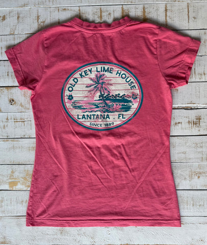 Short Sleeve Ladies Shiplap Palms T-shirt, Crunchberry